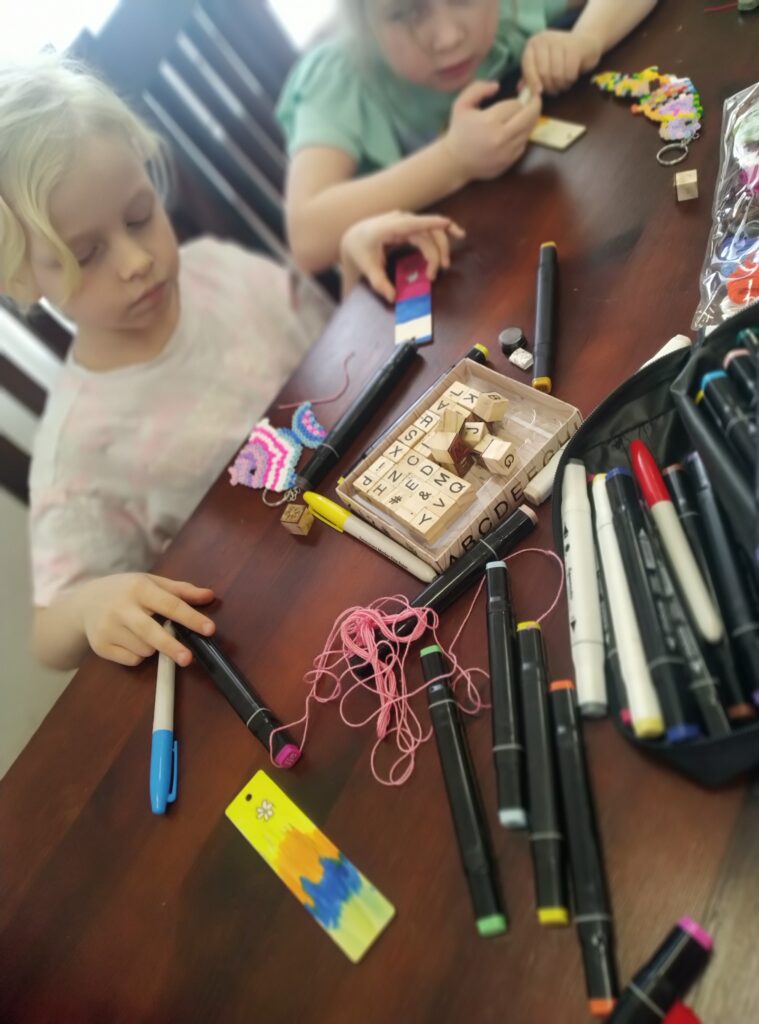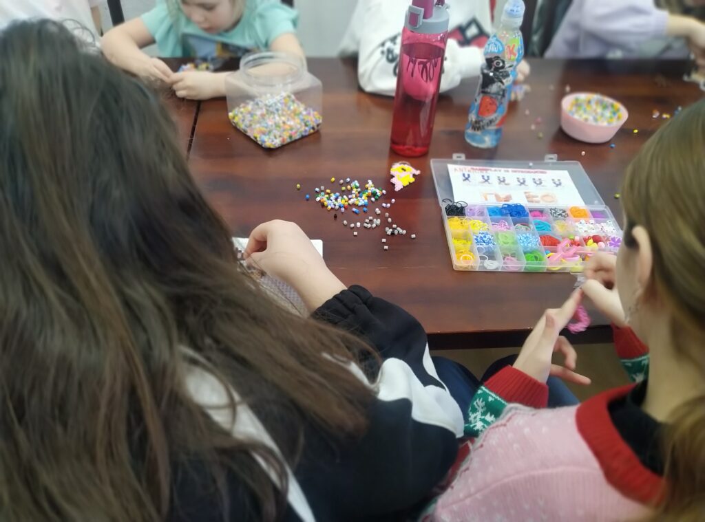 W drugi dzień uczestnicy komponowali kolorowe breloczki, bransoletki i zawieszki. Powstały też zakładki do książek.