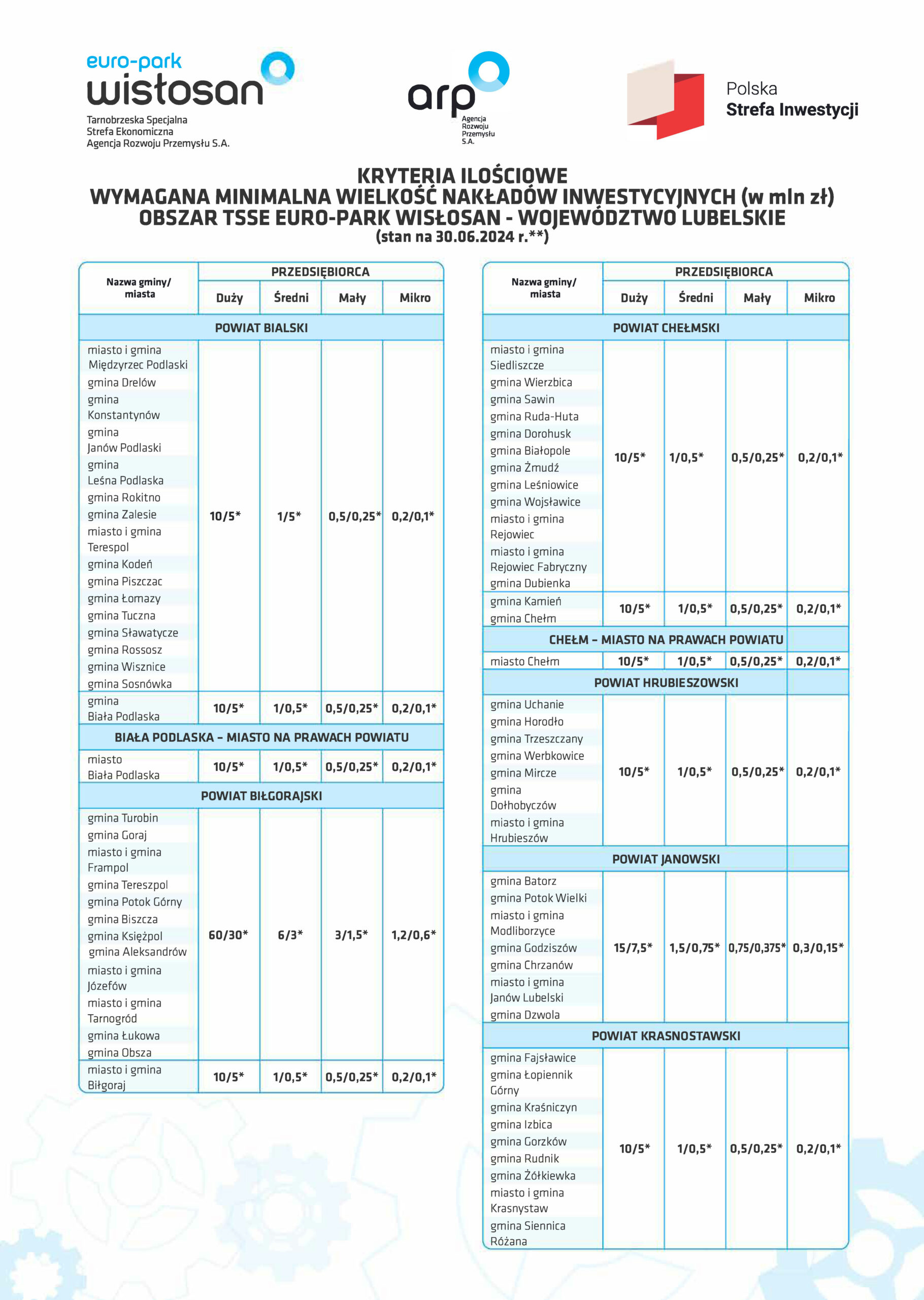 Tarnobrzeska Specjalna Strefa Ekonomiczna EURO-PARK WISŁOSAN informuje, że przedsiębiorcy z gminy Łabunie mogą skorzystać ze zwolnień podatkowych.