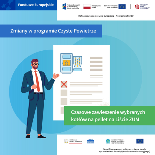 Ministerstwo Klimatu i Środowiska informuje, że w związku z podejrzeniami naruszeń, dotyczącymi braku zgodności z wymogami regulaminu programu Czyste Powietrze, czasowo zawieszono wybrane kotły na pellet znajdujące się na Liście Zielonych Urządzeń i Materiałów (lista ZUM).