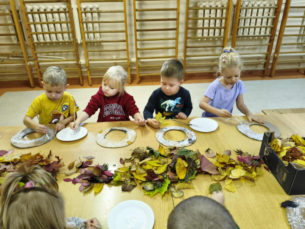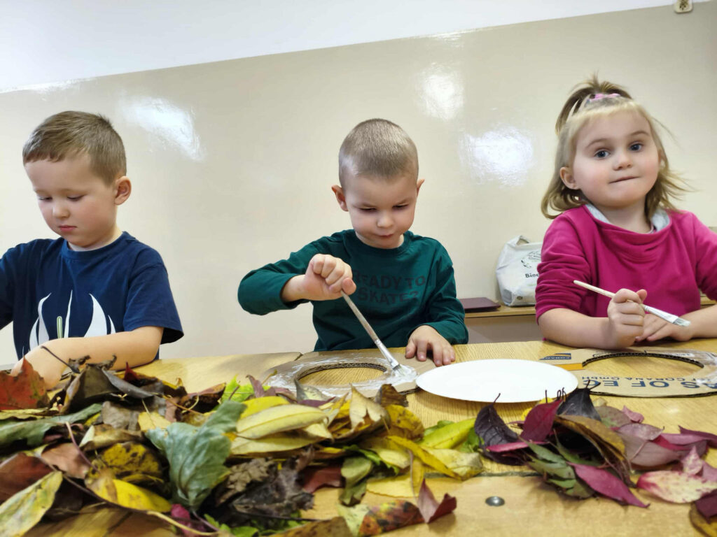 17 października Biblioteka w Łabuniach gościła i zorganizowała w Przedszkolu w Łabuńkach Pierwszych jesienne warsztaty – powstały wianuszki z wybarwionych liści – rożnych gatunków drzew i krzewów.