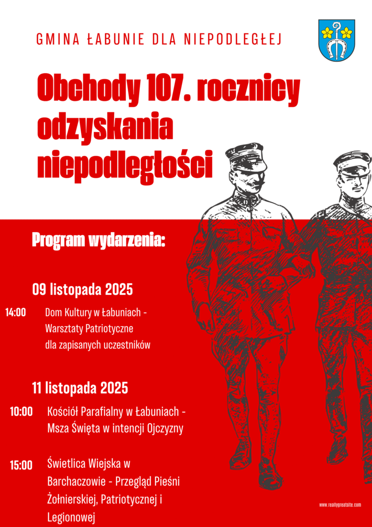 Zapraszamy na obchody 107. rocznicy odzyskania przez Polskę Niepodległości. Szczegóły na plakacie.