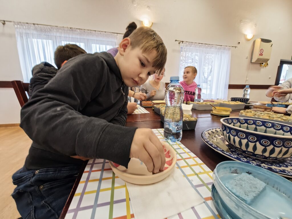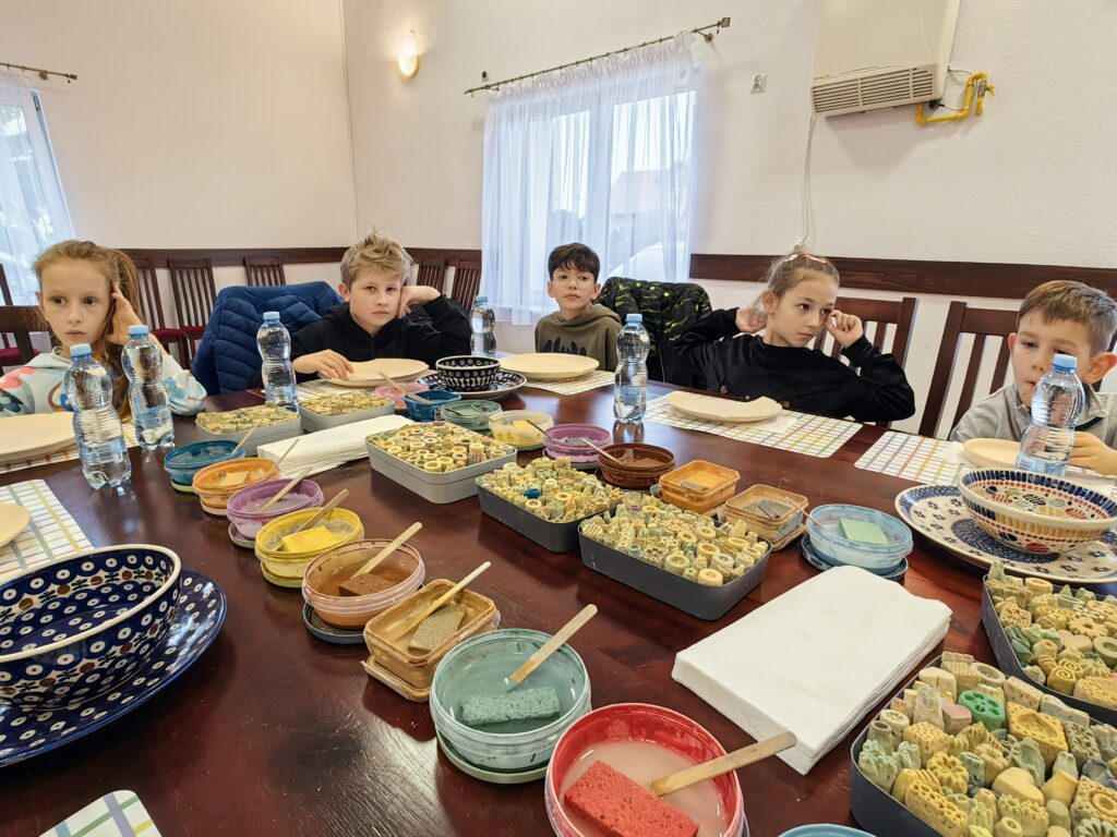 W niedzielę, 9 listopada w Domu Kultury w Łabuniach 25-ro dzieci i młodzieży z naszej gminy tworzyła na kubkach wzory znane z bolesławieckiej manufaktury. Kubki trafiły do wypiekania, skąd wróciły do młodych twórców w takiej formie, w jakiej trafiają do sprzedaży. Dlaczego warsztaty patriotyczne z ceramiką? Ceramika bolesławiecka to dziedzictwo narodowe ze względu na wielowiekową tradycję, unikalną technikę zdobienia (stempelkową) i rozpoznawalność na świecie. Jest ona symbolem polskiego rzemiosła i kultury.