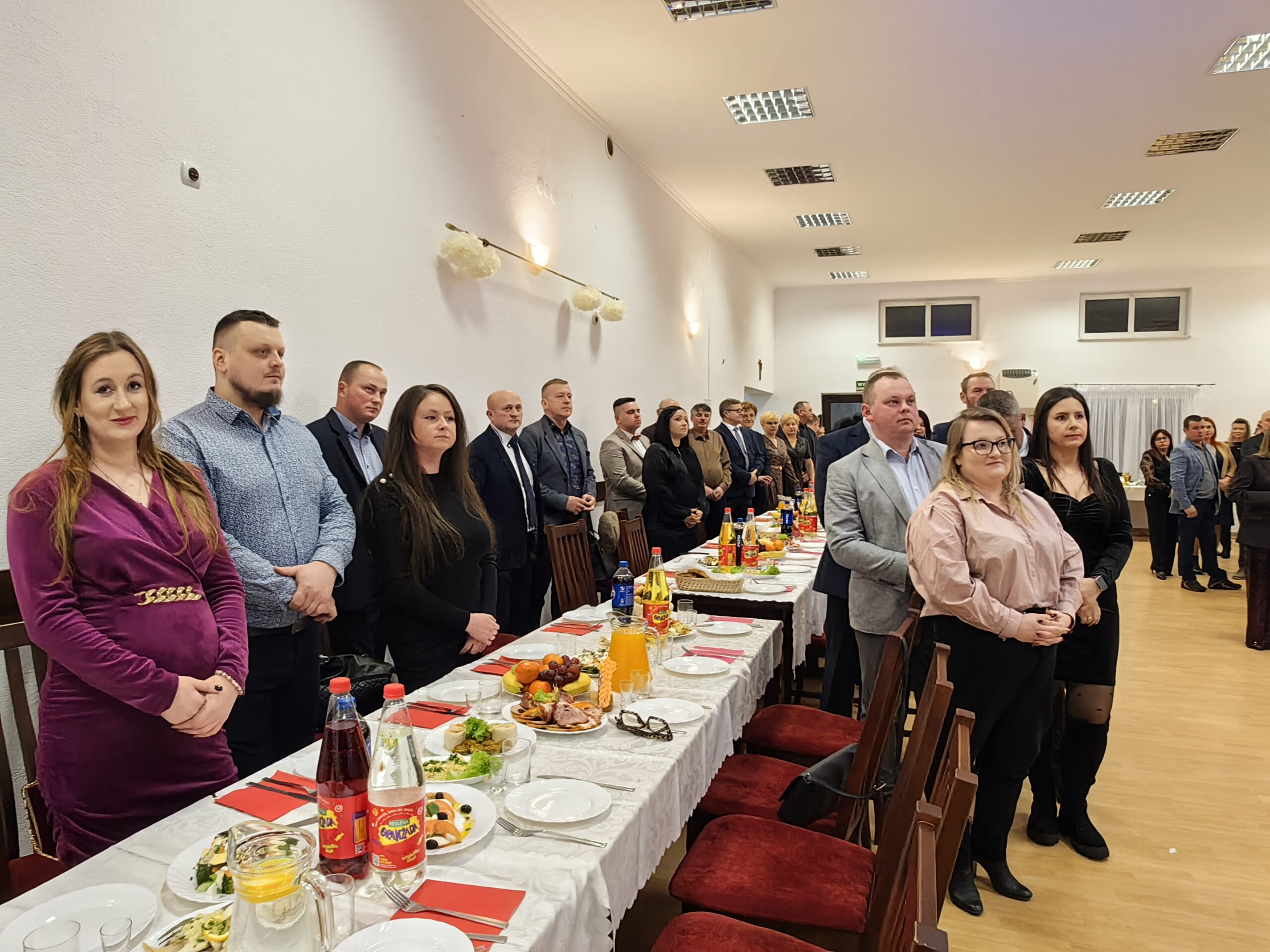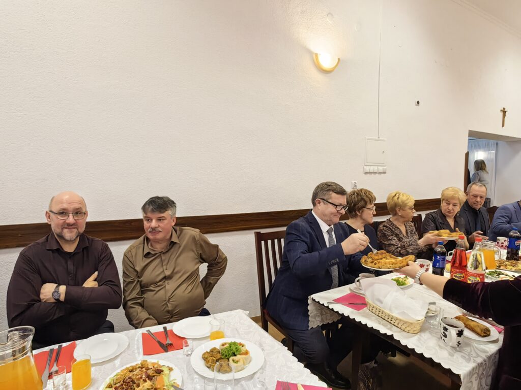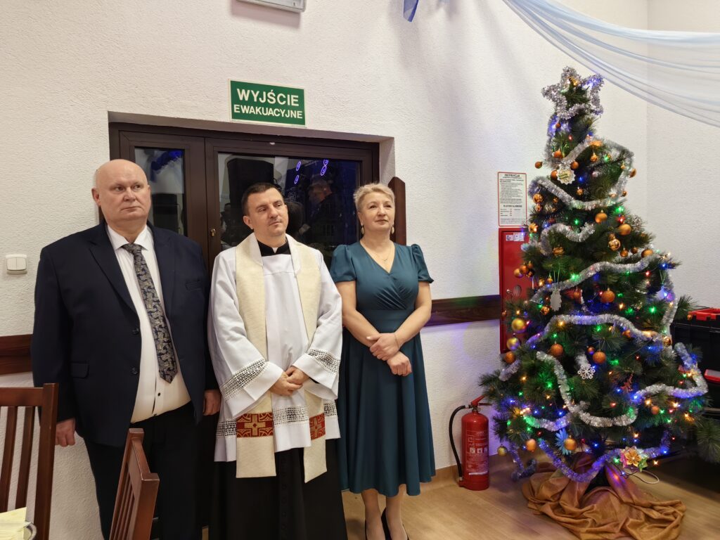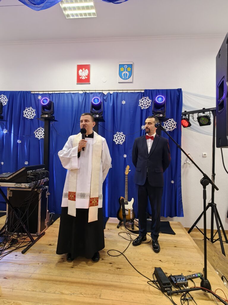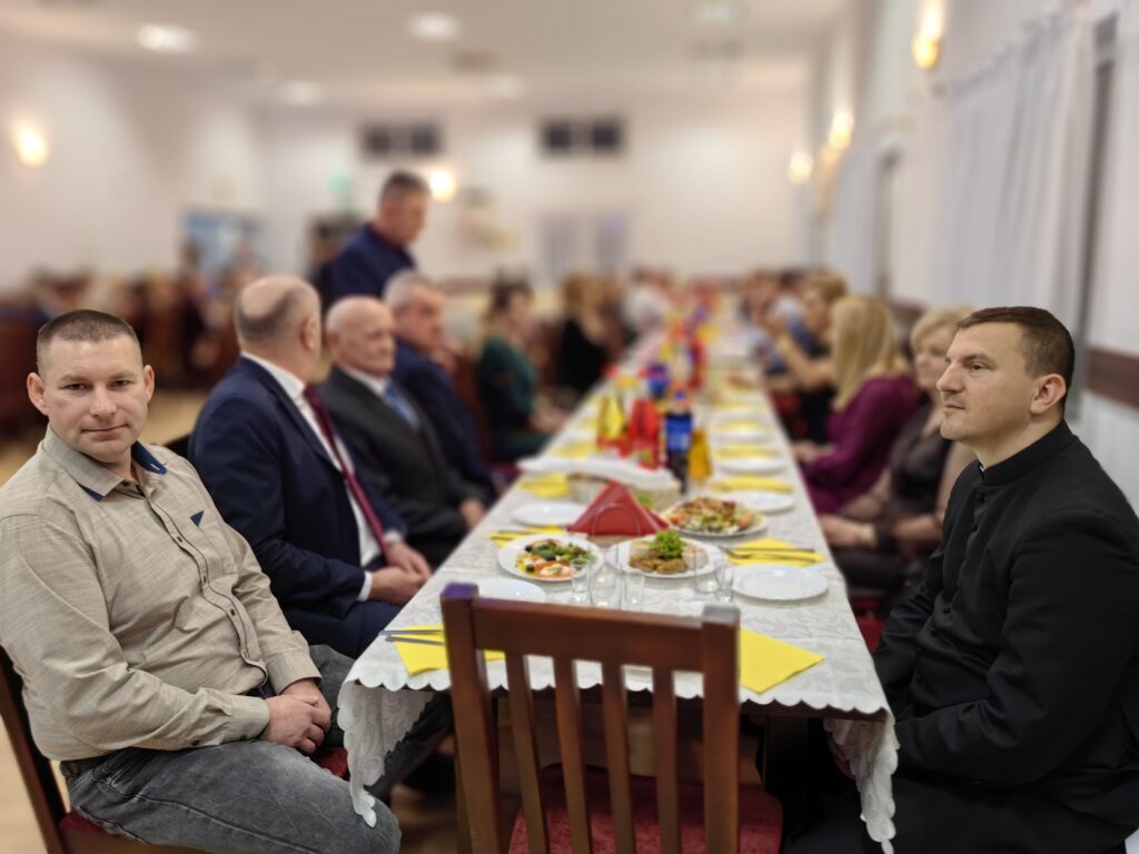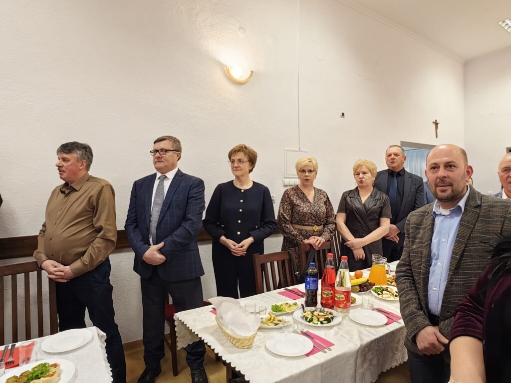 Noworoczne życzenia przybyłym gościom złożył również wikariusz łabuńskiej parafii – ks. Mateusz Furmaniak. Następnie uczestnicy wydarzenia podzielili się opłatkiem i zaśpiewali kolędę.
