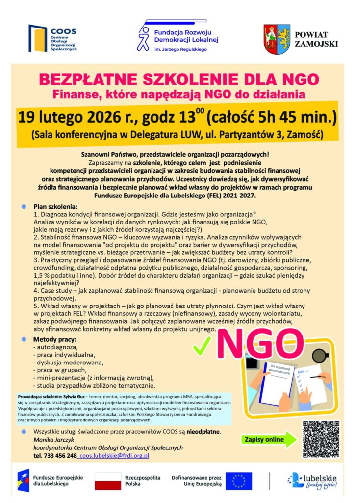 Szkolenie realizowane jest przez Centrum Obsługi Organizacji Społecznych