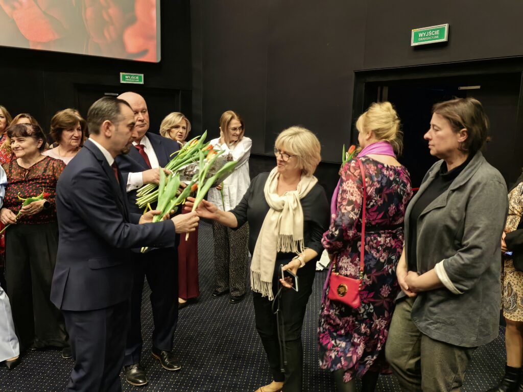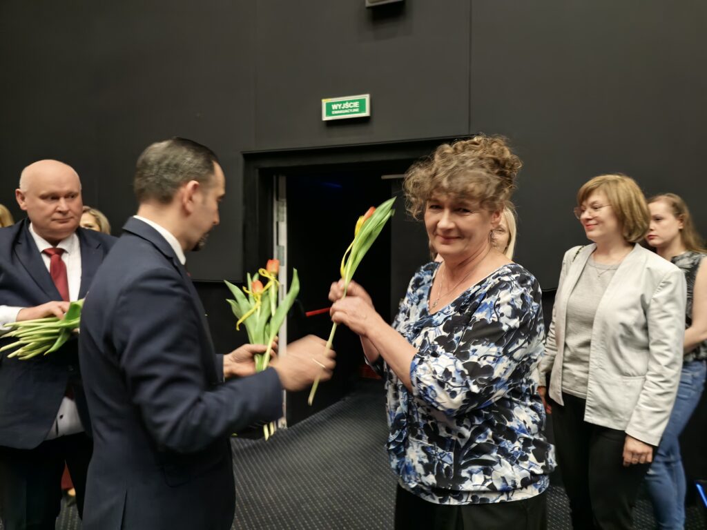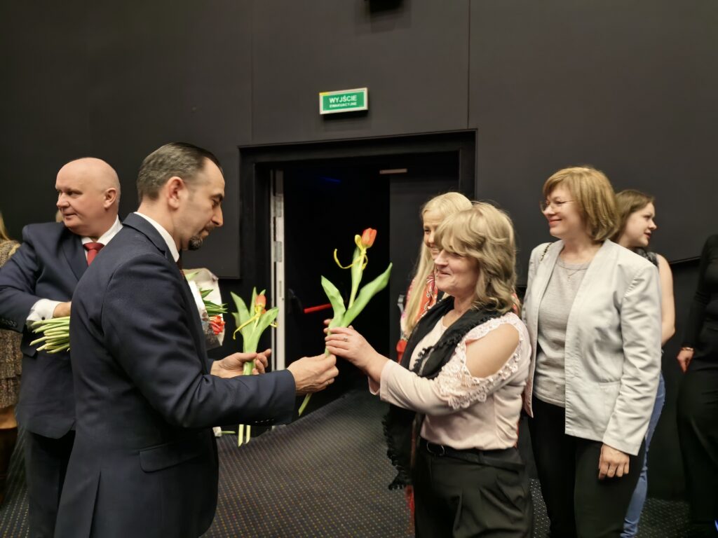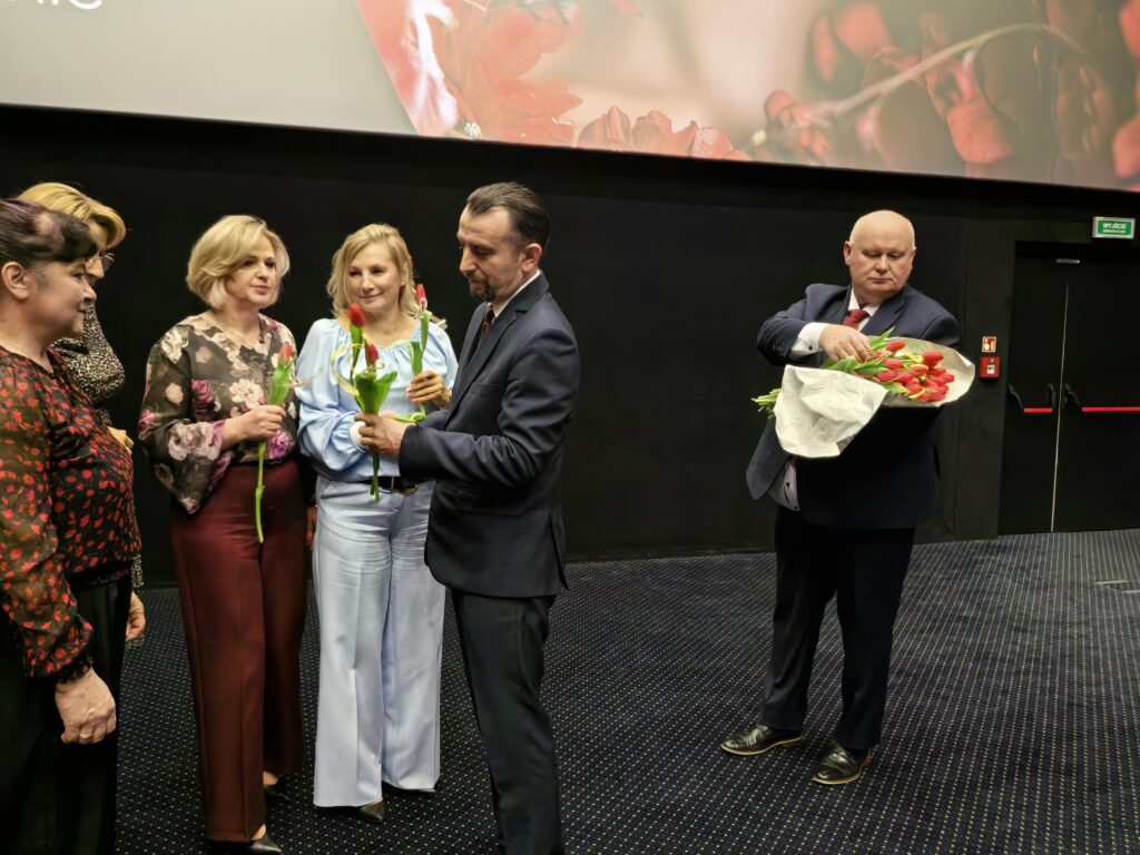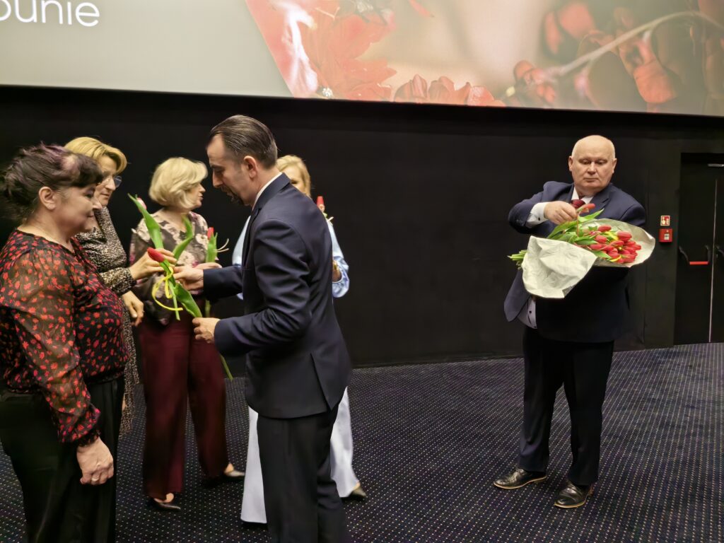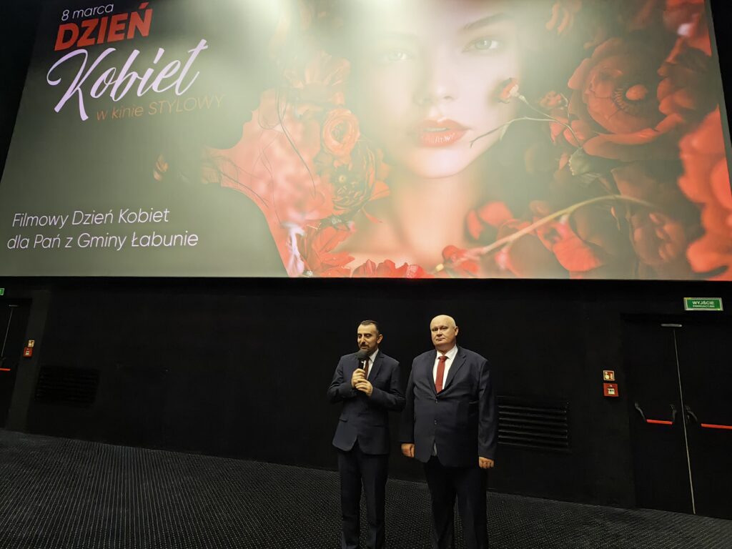 Przed seansem Wójt Gminy Łabunie – Mariusz Kukiełka oraz Wiceprzewodniczący Rady Gminy Łabunie – Mariusz Kliza złożyli Paniom życzenia i wręczyli kwiaty .