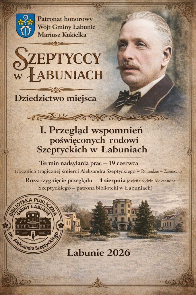 W 2023 roku Biblioteka w Łabuniach obchodziła swój jubileusz, podczas którego placówce nadano imię Aleksandra hrabiego Szeptyckiego. Z tej okazji, pielęgnując pamięć o swoim patronie oraz dostrzegając znaczenie jego obecności i roli – także w kontekście współczesnym – biblioteka ogłasza nowe, cykliczne przedsięwzięcie.
