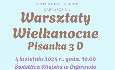 Wójt Gminy Łabunie zaprasza na Gminne Warsztaty Wielkanocne. Szczegóły na plakacie.