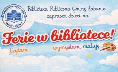 Biblioteka Publiczna Gminy Łabunie zaprasza dzieci na "Ferie w bibliotece" - szczegóły na załączonym plakacie.