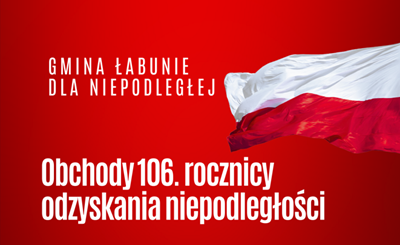 Zapraszamy mieszkańców gminy Łabunie do aktywnego udziału w obchodach 106. rocznicy odzyskania niepodległości RP.