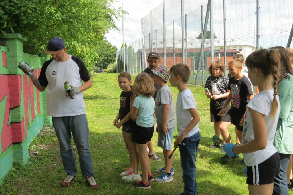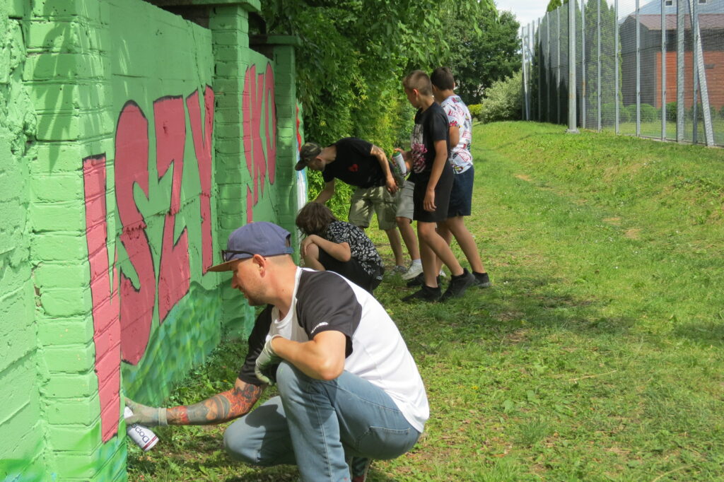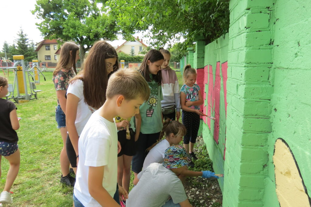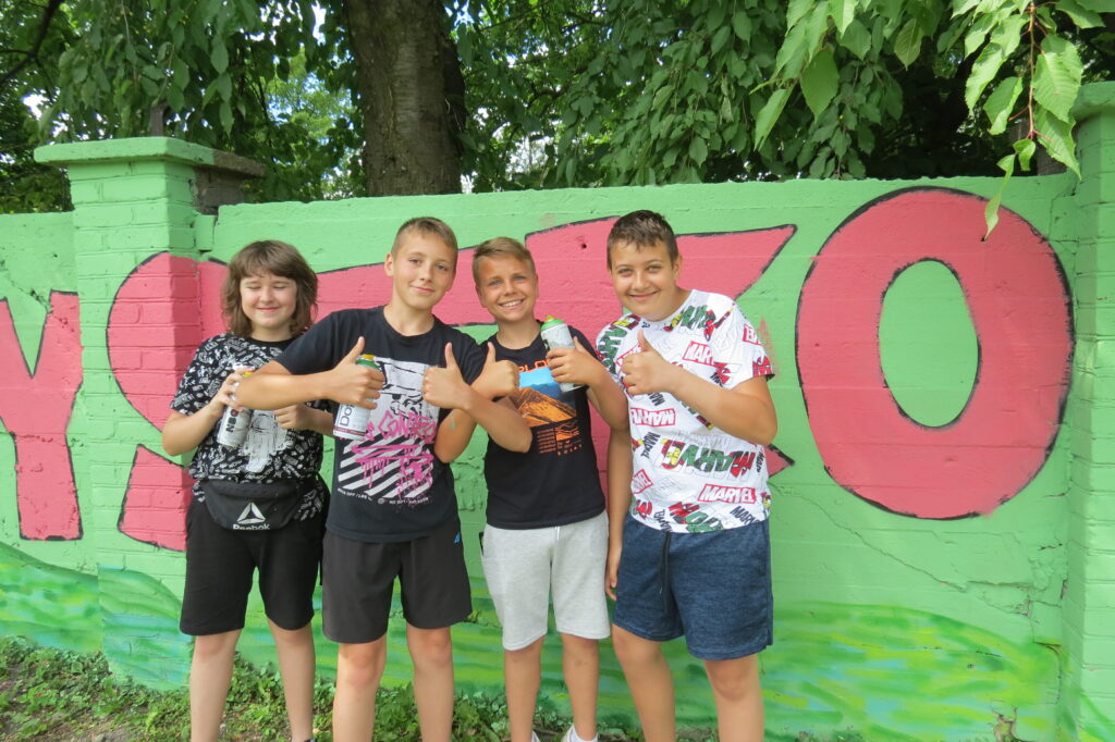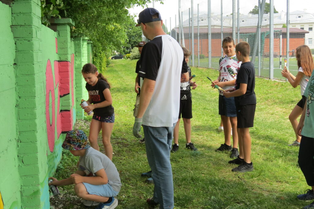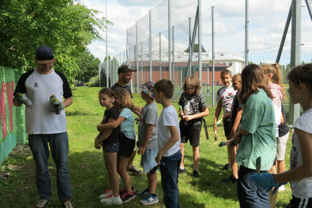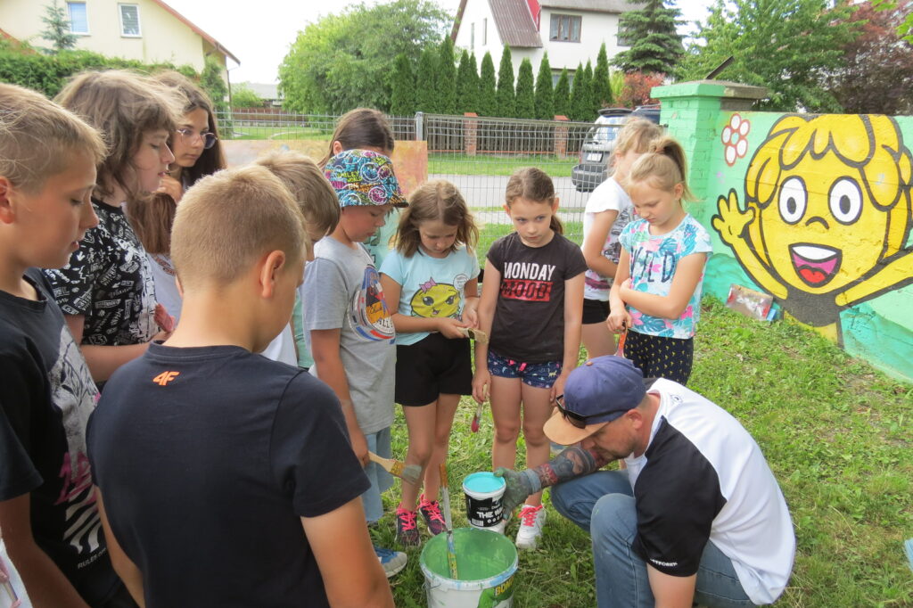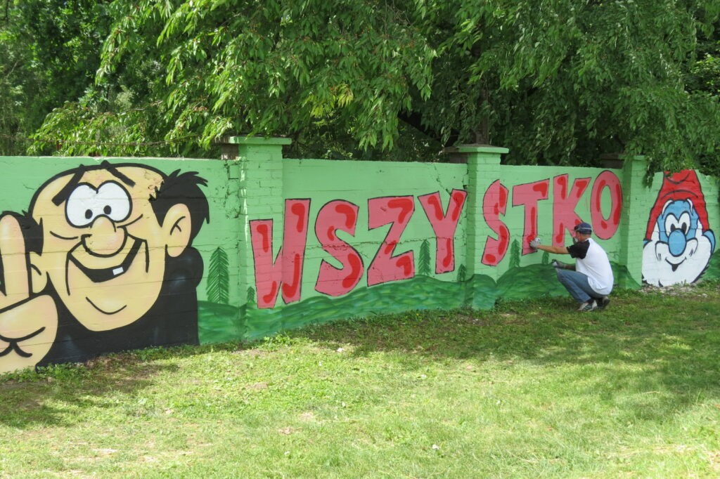To już druga edycja gminnych warsztatów graffiti. W ubiegłym roku w ramach wakacyjnej edycji wydarzenia uczestnicy namalowali z grupą Sforky z Zamościa inne postaci z bajek, m.in. Bolka i Lolka, Pszczółkę Maję oraz Reksia.