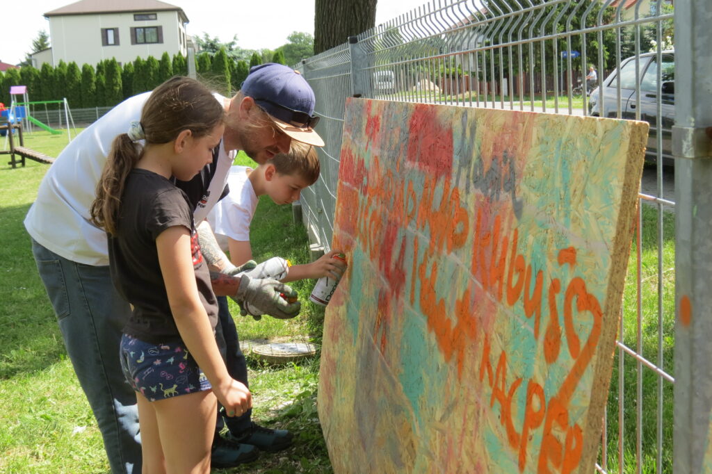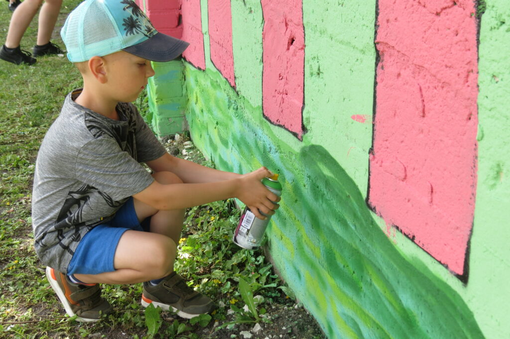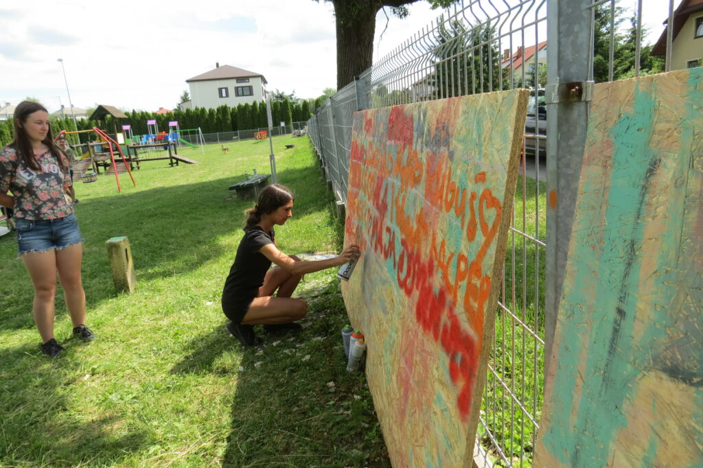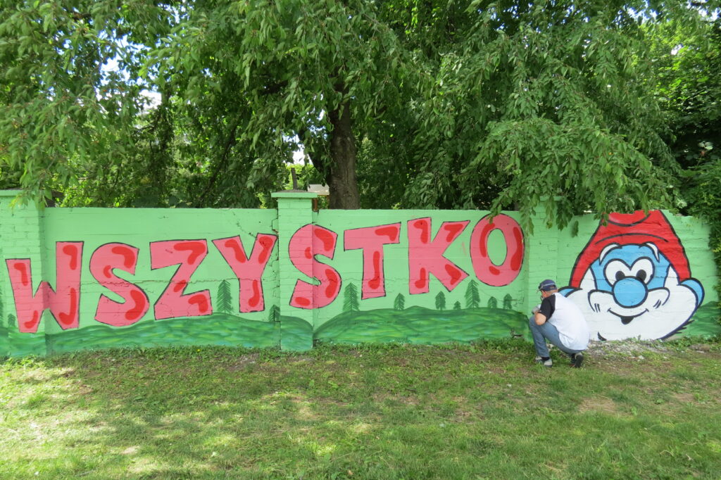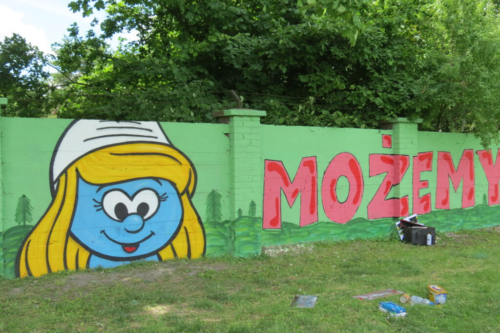 Tegoroczne warsztaty odbyły się w dniach 22 i 23 czerwca. Uczestnicy zmalowali kolejną część bajkowego graffiti na murze przy placu zabaw w Łabuniach. Szare płyty betonowe – dzięki dzieciom i młodzieży z gminy Łabunie – zyskały kolorowy blask, rozweselając plac zabaw. Pierwszego dnia warsztatów uczestnicy poznali w teorii technikę sztuki street art a potem – zabrali się za malowanie muralu. Kolejny dzień to już zabawa ze sprayami. Znana grupa Stforky z Zamościa razem z uczestnikami zmalowała postaci z bajki “Smerfy”. Dzieciaki mogły również liczyć na ciepły posiłek, słodki poczęstunek i napoje.