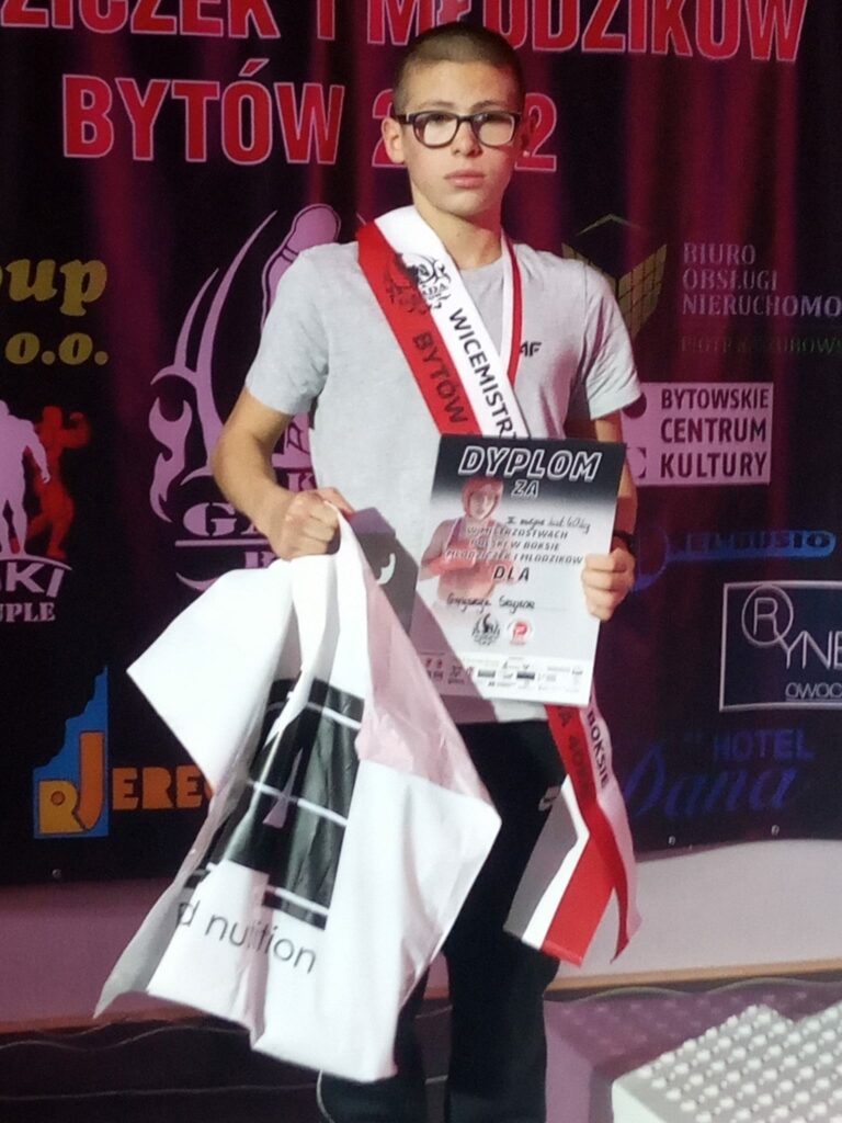 Szymon Gryszyn z Łabuń zdobył tytuł Wicemistrza Polski na Mistrzostwach Polski Młodzików w boksie.
