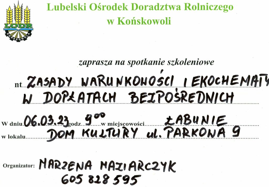 LODR zaprasza na spotkanie szkoleniowe dotyczące dopłat bezpośrednich.