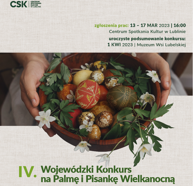 Centrum Spotkań Kultur w Lublinie zaprasza do udziału w IV. Wojewódzkim Konkursie na Palmę i Pisankę Wielkanocną.