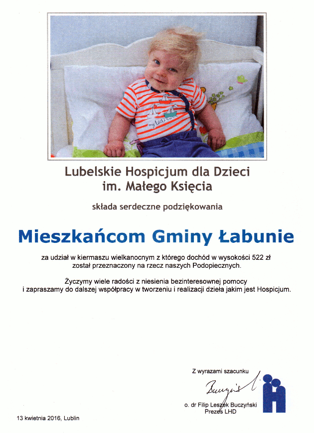 Podziękowania dla Mieszkańców Gminy Łabunie