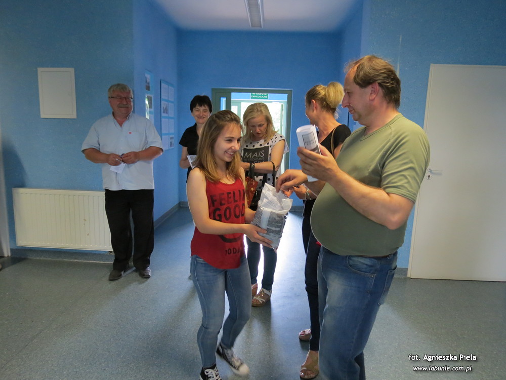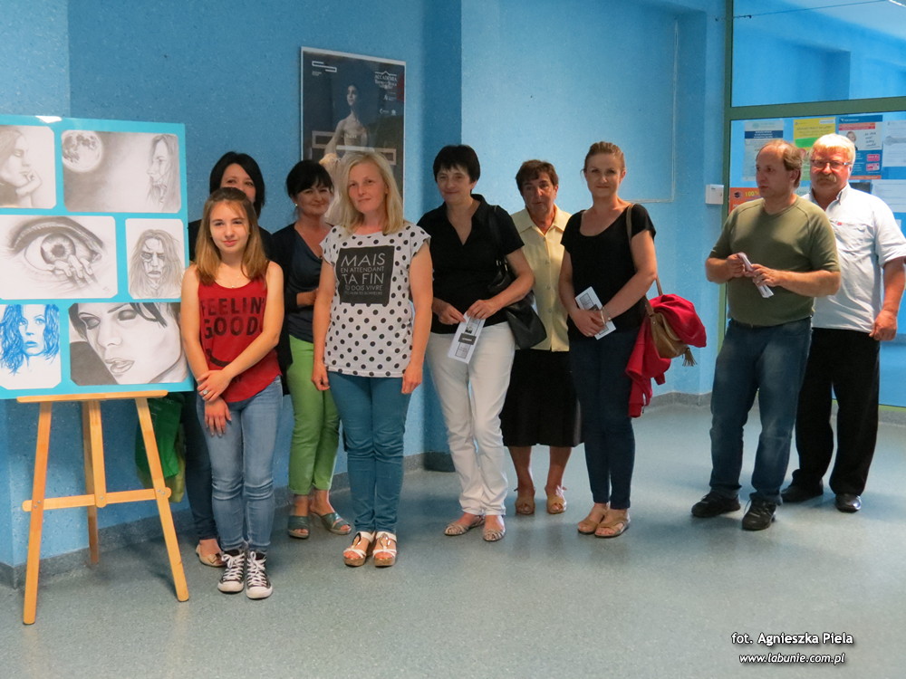 Na otwarcie obok organizatorów i rodziny Klaudii przybyli znajomi z klasy, nauczyciele z Gimnazjum w Łabuniach – Walentyna Mazur-Chromiak i Dorota Sołoducha oraz Ewa Mulawa – Przewodnicząca Rady Rodziców. Wspierający gminne talenty Wójt Gminy Łabunie przekazał upominek – niezbędnik rysownika (ołówki, węgle i szkicownik).