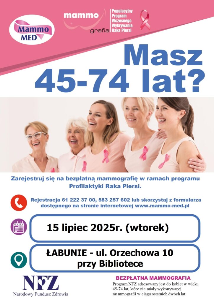 W imieniu NFZ Lublin publikujemy informację na temat bezpłatnych badań mammograficznych w Łabuniach (mammobus w Łabuniach – 15 lipca).