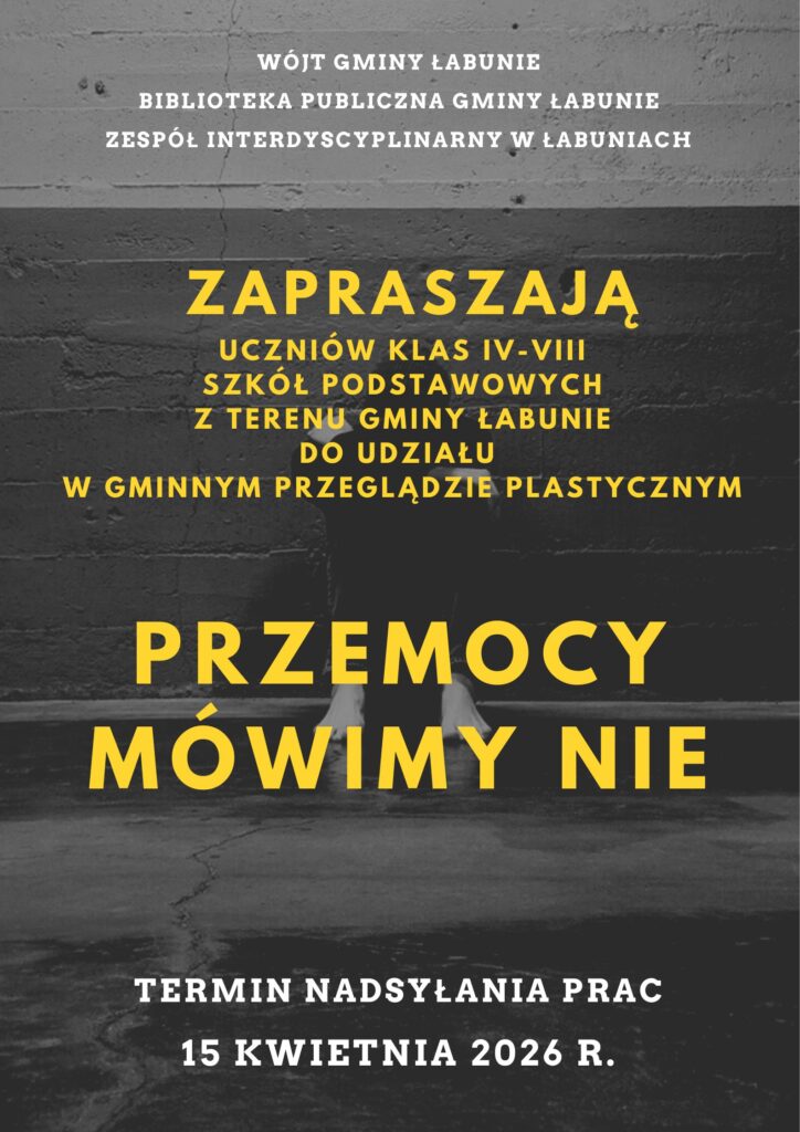 Wójt Gminy Łabunie, Biblioteka Publiczna Gminy Łabunie oraz Zespół Interdyscyplinarny w Łabuniach zapraszają do udziału w Gminnym Przeglądzie Plastycznym “PRZEMOCY MÓWIMY NIE”.