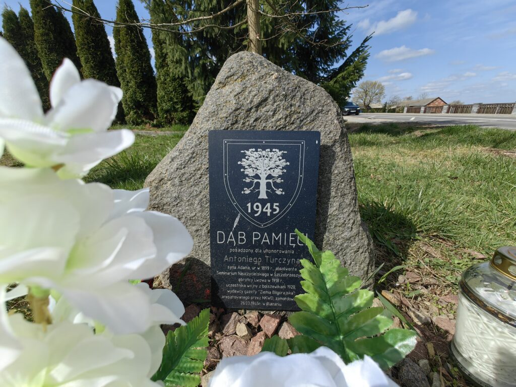 Dąb Pamięci przy Świetlicy Wiejskiej w Wierzbiu poświęcony nauczycielowi, redaktorowi i regionaliście Antoniemu Turczynowi