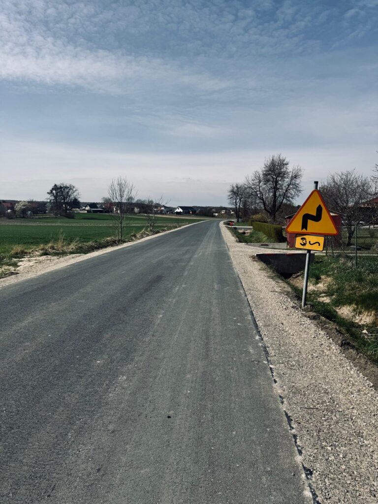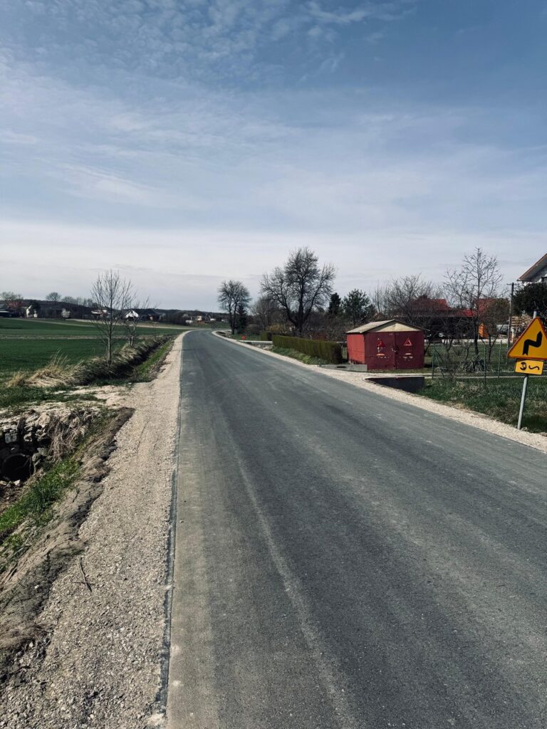 Oprócz wylanego dywanu asfaltowego, zostały utwardzone pobocza i wyregulowane zjazdy.