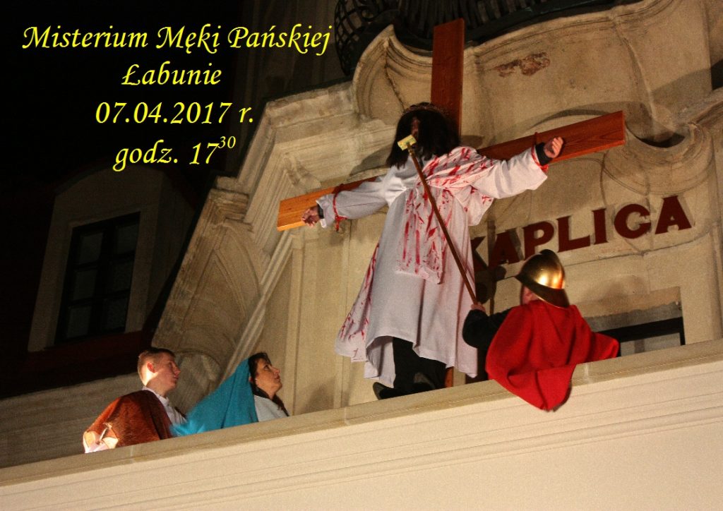 Stowarzyszenie na Rzecz Rozwoju Gminy Łabunie, Wójt Gminy Łabunie oraz Parafia Rzymskokatolicka w Łabuniach, zapraszają wszystkich chętnych do uczestnictwa w Misterium Męki Pańskiej, w dniu 07.04.2017 r. o godzinie 17.30.