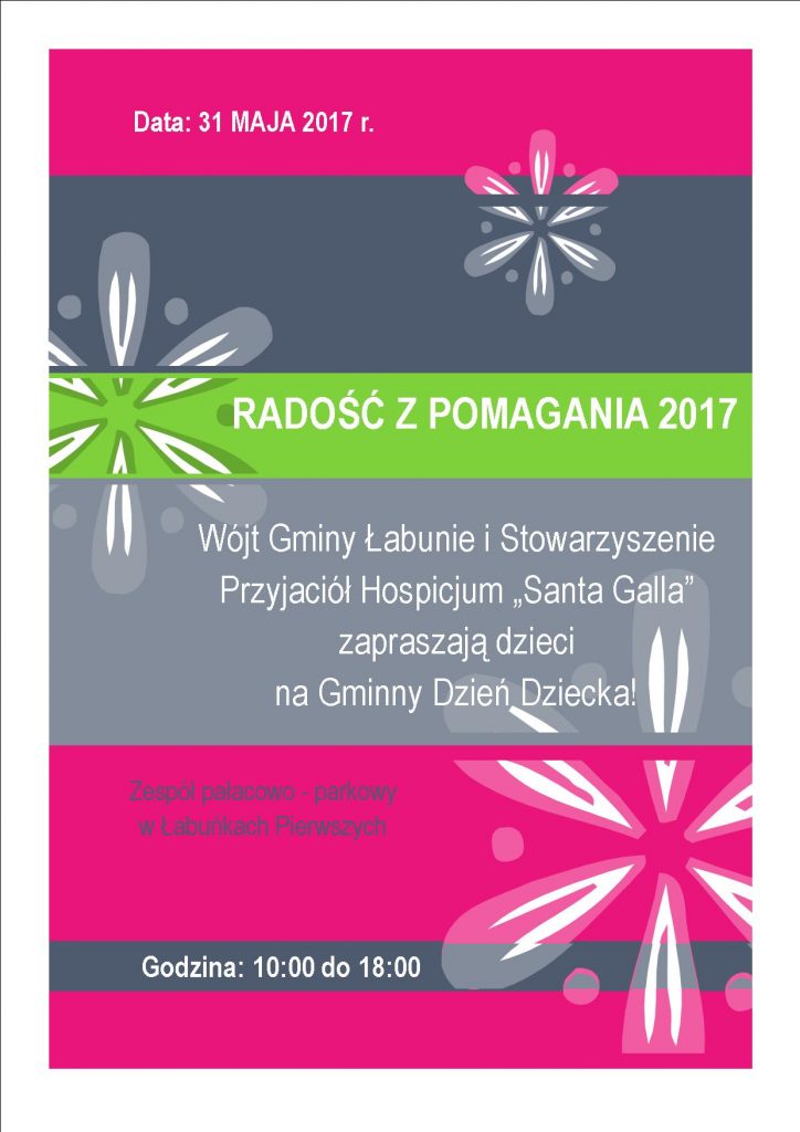 Wójt Gminy Łabunie i Stowarzyszenie Przyjaciół Hospicjum „Santa Galla” zapraszają dzieci na Gminny Dzień Dziecka!