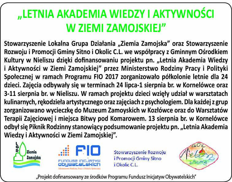 Lokalna Grupa Działania “Ziemia Zamojska” informuje o zakończonych półkoloniach letnich.