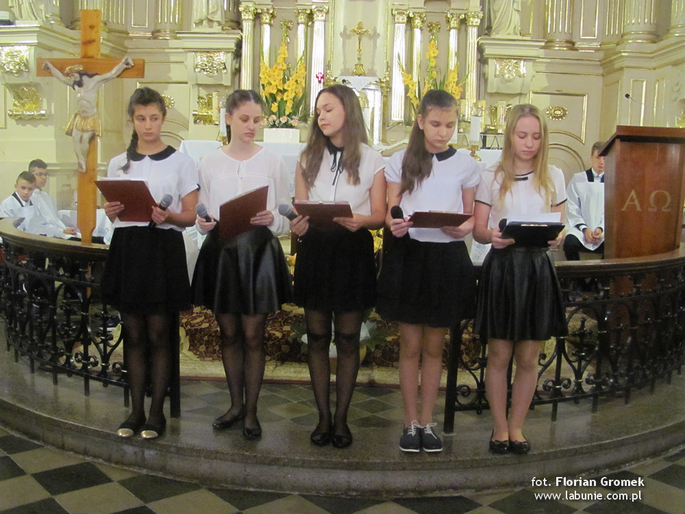 4 września o godz. 8:00 w kościele parafialnym w Łabuniach odprawiona została Msza św., po której młodzież z Gimnazjum w Łabuniach pracująca pod kierunkiem Doroty Sołoduchy przedstawiła część artystyczną poświęconą 78. rocznicy wybuchu II wojny światowej. W ten sposób mogliśmy złożyć wyrazy najwyższego hołdu i wdzięczności dla tych, którzy poświęcili swoje życie za wolność Polski. Na łabuńskim cmentarzu spoczywają bohaterowie tamtego września i choć polegli, przetrwała pamięć o tamtych straszliwych czasach.