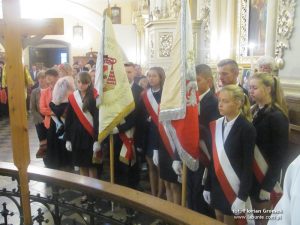Następnie delegacja uczniów i nauczycieli wraz z Wójtem Antonim Wojciechem Turczynem oraz Dyrektorami Szkół: Bernardem Panasiukiem, Mariolą Kołodziejczyk i Dorotą Turczyn złożyli kwiaty i zapalili znicze na grobach żołnierskich, a proboszcz ks. Piotr Rawlik modlitwą wspomniał tych, którzy umierali, abyśmy my mogli godnie żyć…