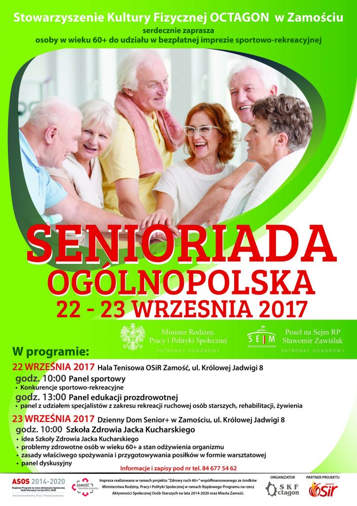 Patron Honorowy, wiceprzewodniczący sejmowej Komisji Polityki Senioralnej Poseł na Sejm RP Sławomir Zawiślak zaprasza na Ogólnopolską Senioriadę, która odbędzie się w dniach 22-23 września br. w Zamościu.