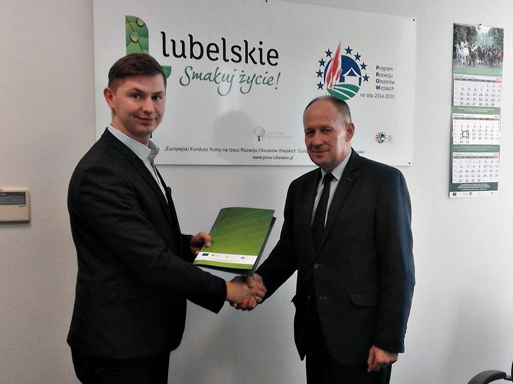 17 października w siedzibie Departamentu PROW Urzędu Marszałkowskiego w Lublinie Wójt Gminy Łabunie Antoni Wojciech Turczyn i Skarbnik Gminy Agnieszka Niemczuk w obecności Zastępcy Dyrektora Mateusza Winiarskiego podpisali umowy o dofinansowanie przedsięwzięć na terenie naszej gminy.