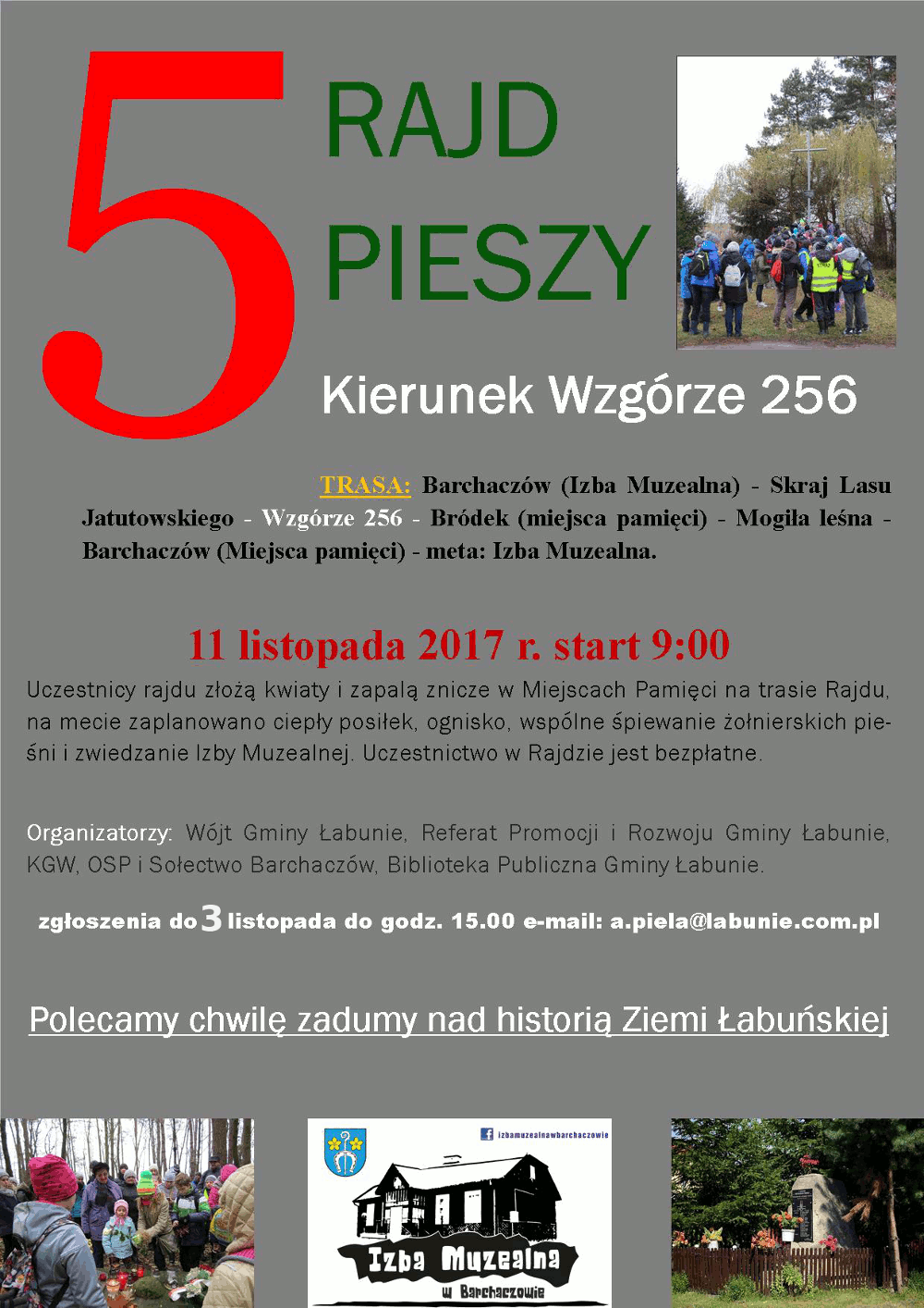 - godz. 9.00: V Rajd Pieszy Kierunek: Wzgórze 256;