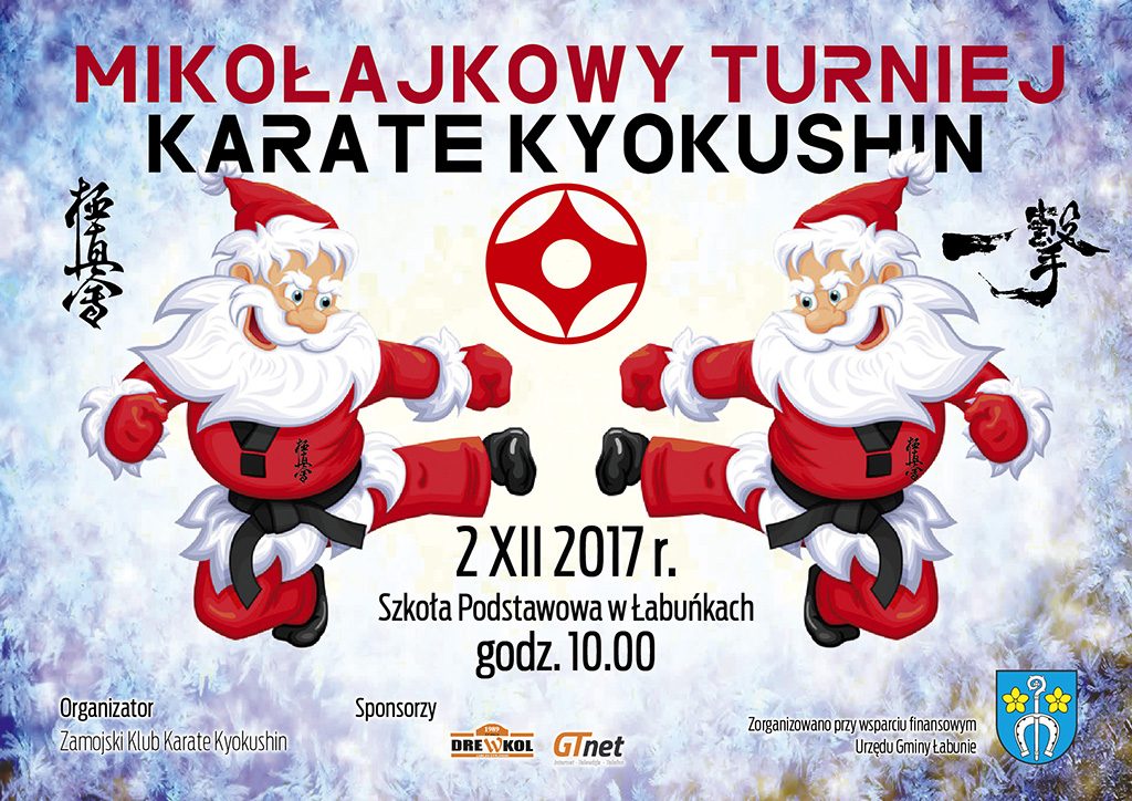 Zamojski Klub Karate Kyokushin zaprasza 2 grudnia 2017 r. do hali sportowej Szkoły Podstawowej w Łabuńkach Pierwszych na Mikołajkowy Turniej Karate Kyokushin.