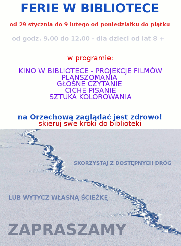 Biblioteka Publiczna Gminy Łabunie zaprasza od 29 stycznia do 9 lutego na ferie.