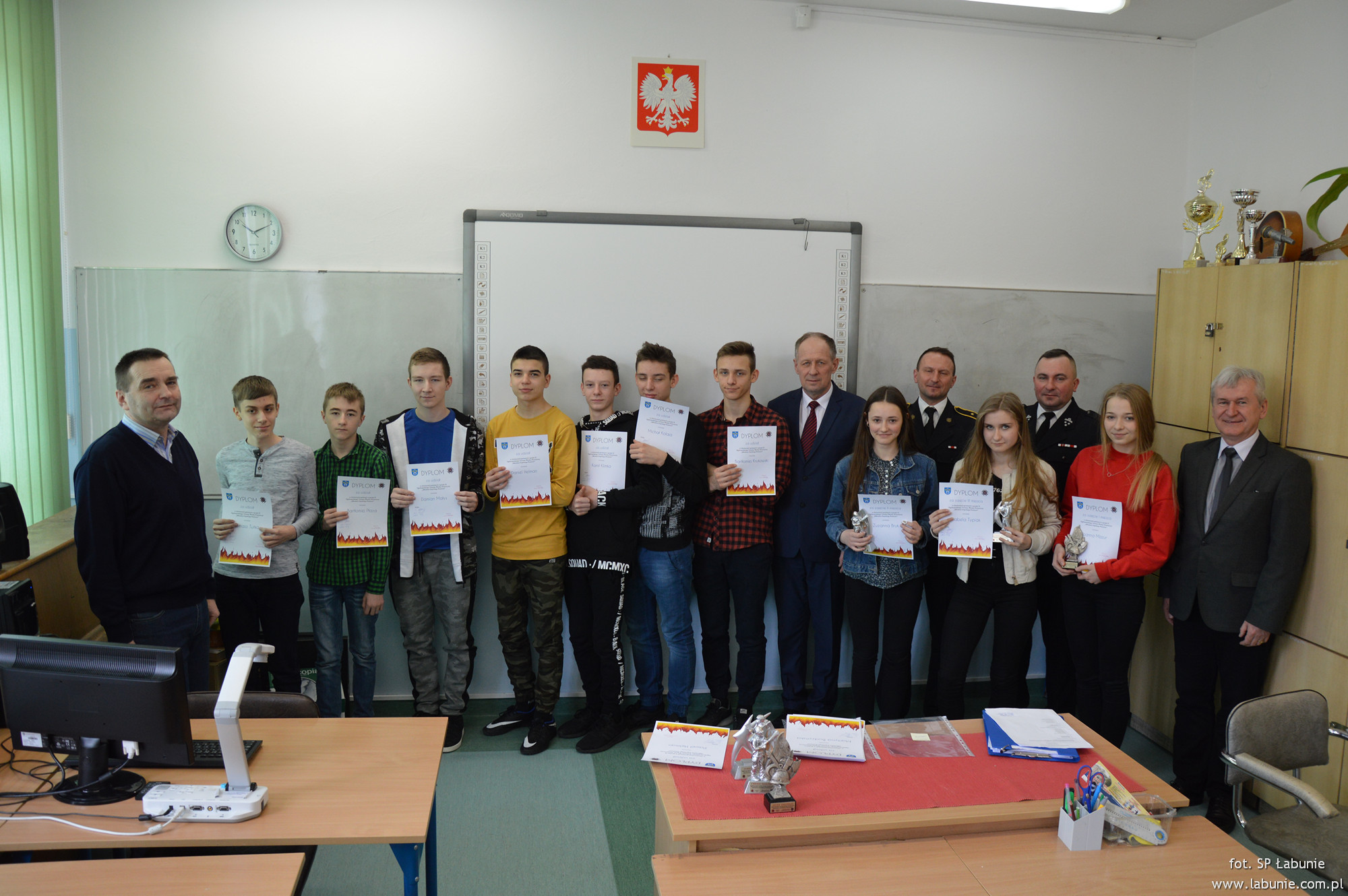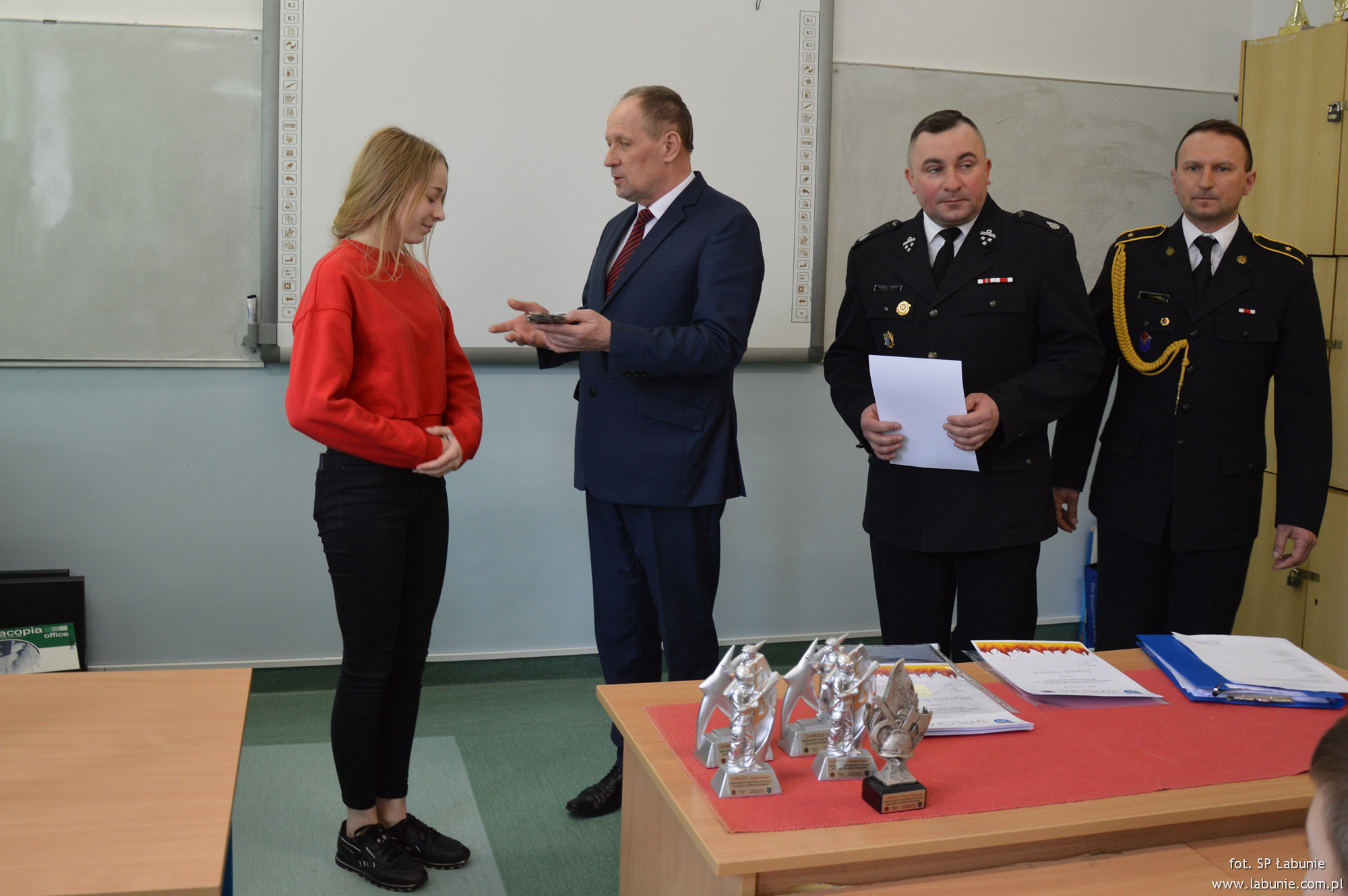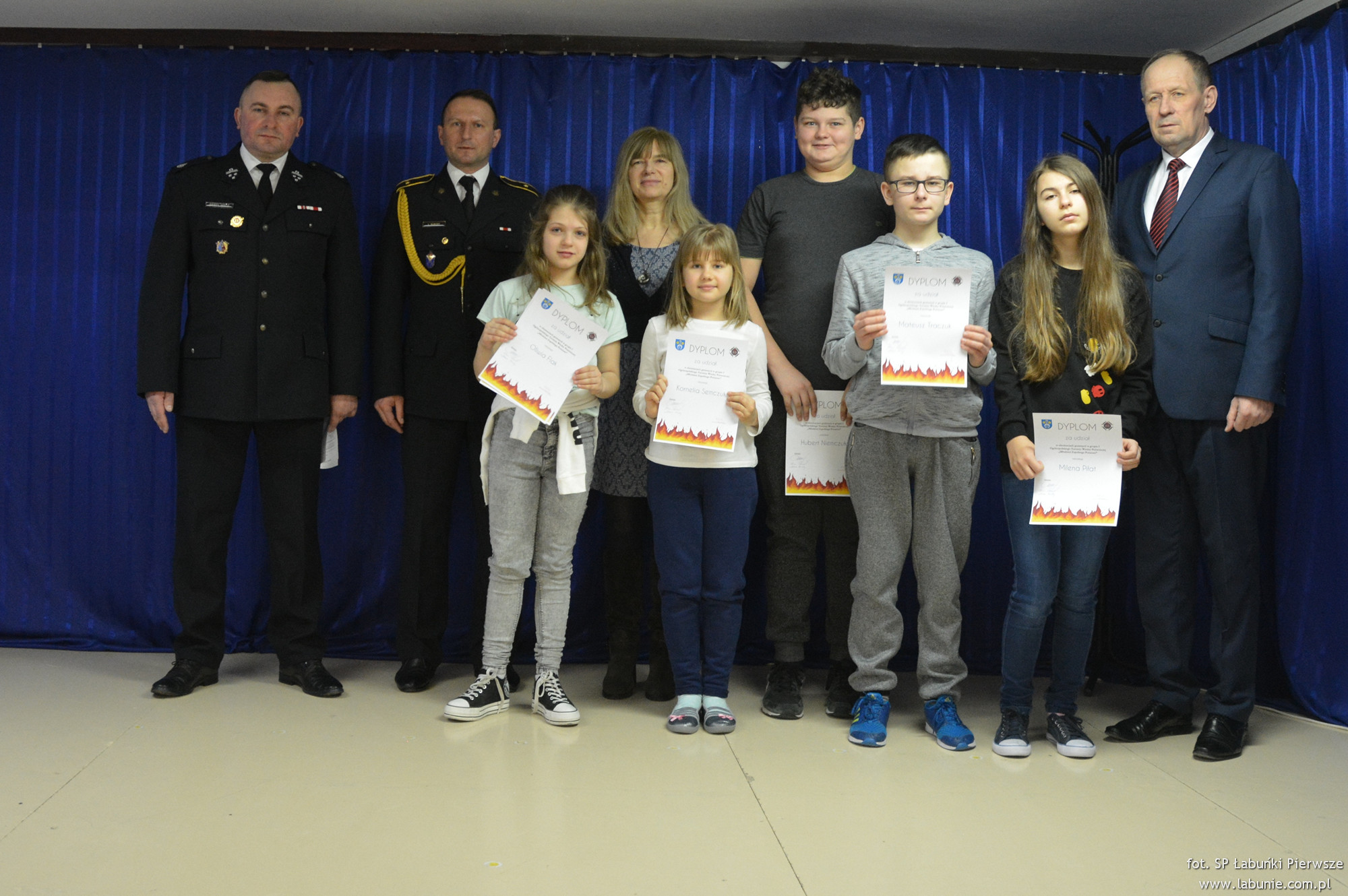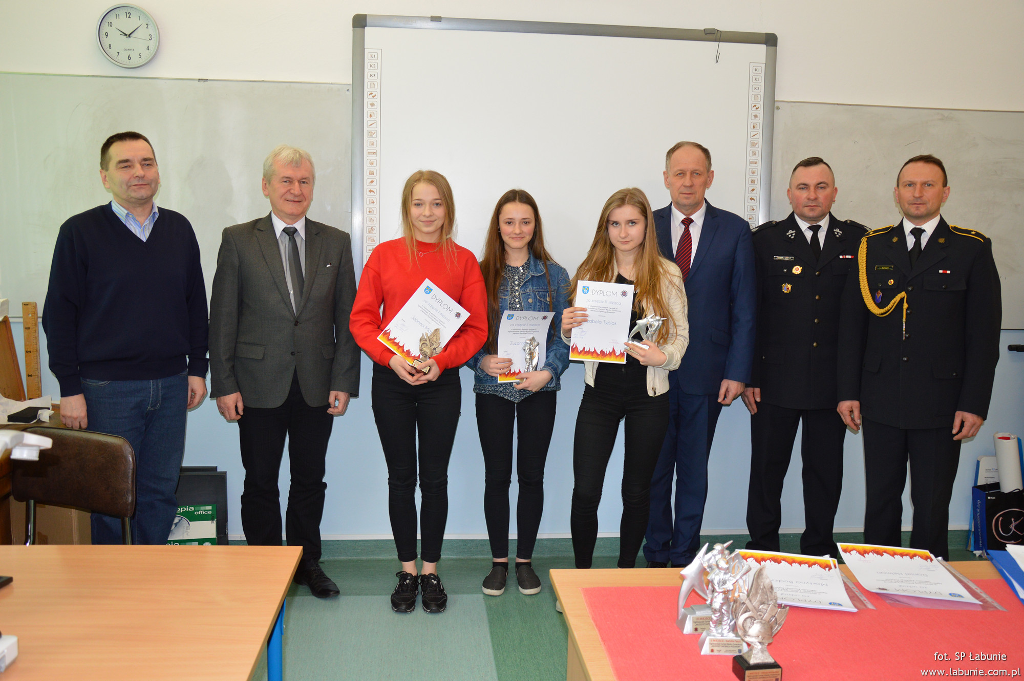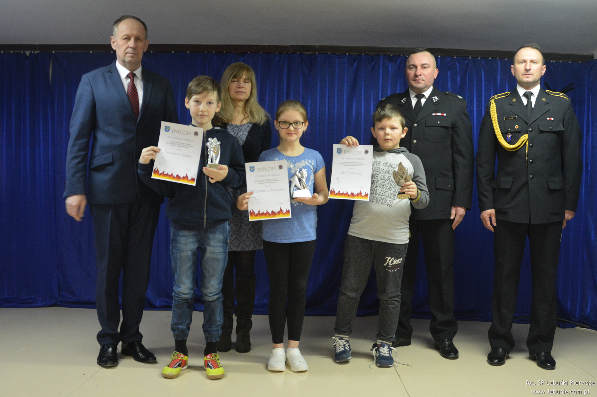 21 lutego Wójt Gminy Łabunie Antoni Wojciech Turczyn, Komendant Gminny Paweł Mróz i przedstawiciel Komendy Miejskiej Państwowej Straży Pożarnej w Zamościu asp. Łukasz Burdzy wręczyli uczestnikom konkursu dyplomy. Laureaci zostali uhonorowani pamiątkowymi statuetkami.