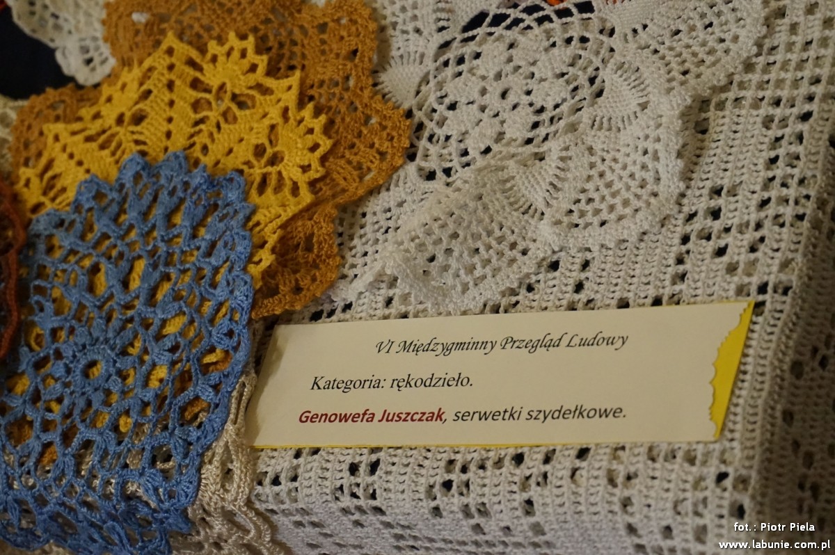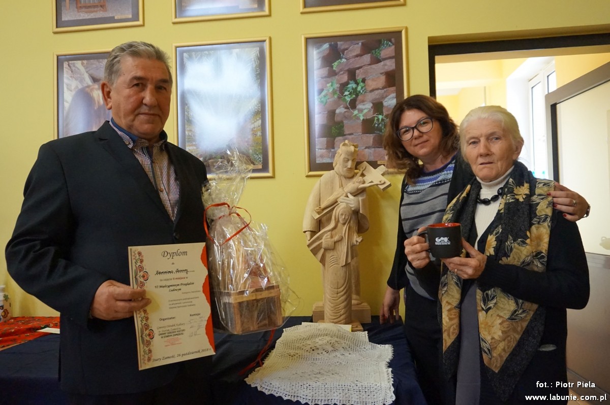Nasi Mieszkańcy z Pasją – Pan Hieronim Zasuwa (rzeźba) i Pani Genowefa Juszczak (szydełkowe serwety) zaprezentowali swoją twórczość podczas VI Międzygminnego Przeglądu Ludowego, który odbył się 26 października w GOK w Starym Zamościu. Konkurencja była duża, ale II miejsce Pana Hieronima i uznanie dla Pani Gieni za precyzję wykonania mobilizują do dalszej pracy.